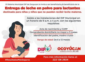 El Sistema Municipal #DIF de Ocoyucan te invita a ser beneficiaria y/o beneficiario de la "Entrega de leche en polvo...