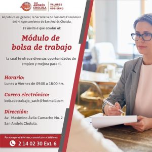 No dejes pasar la oportunidad de revisar la Bolsa de Trabajo que la Secretaría de Fomento Económico San Andrés Cholula pone a...