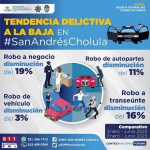 CONTINÚA A LA BAJA TENDENCIA DELICTIVA EN SAN ANDRÉS CHOLULA