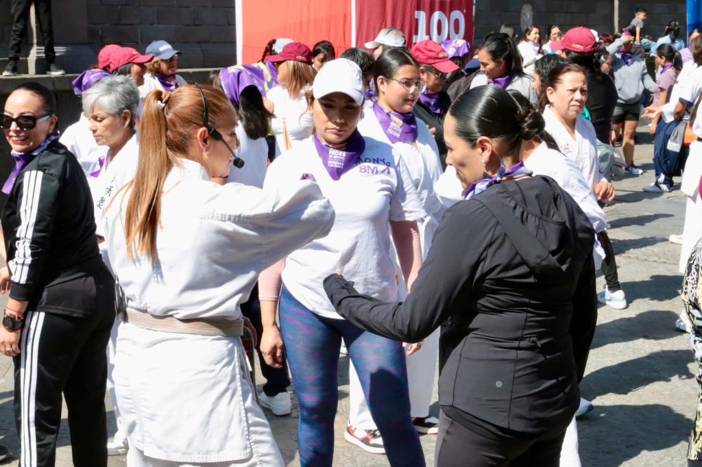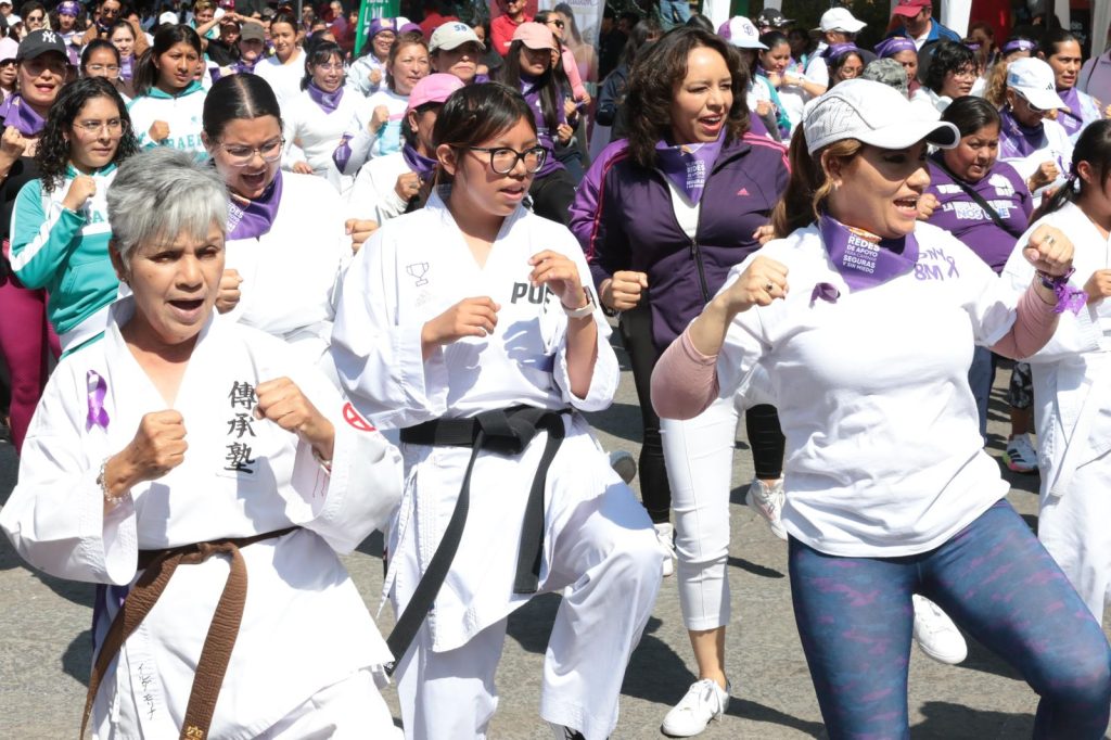 CIUDAD DE PUEBLA, Pue.-Como parte de una iniciativa que fortalece la seguridad, la confianza y la organización comunitaria de las participantes, cientos de poblanas participaron en una clase masiva de karate do, enfocada en la defensa personal, organizada por el Gobierno del Estado en el marco del Día Internacional de la Mujer.