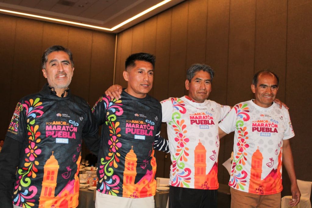 Las playeras que portarán los corredores se mostraron en dos tonalidades, blanco (para las distancias de 5 y 10 kms) y negro (21 y 42.195 kms), con símbolos característicos y representativos del estado, mientras que la medalla oficial de este 2025, incorpora elementos únicos que reflejan la identidad de Puebla.