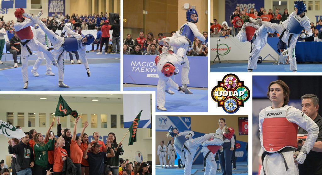 Cholula, Puebla; a 3 de noviembre de 2025.- Demostrando que en la Universidad de las Américas Puebla hay excelencia académica y deportiva, los Aztecas de taekwondo de la UDLAP cerraron su actuación en el Campeonato Nacional de la CONADEIP con la suma de 14 medallas (2 de oro, 6 de plata y 6 bronce) y los trofeos de Subcampeón femenil de combate, Subcampeón femenil de poomsae y tercer lugar varonil de poomsae, consagrándose así entre los mejores del país en el deporte marcial en México.
