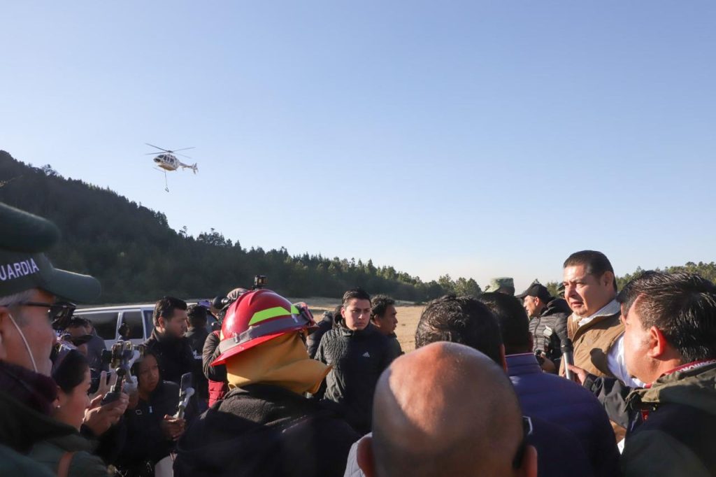 GOBERNADOR ARMENTA SOBREVUELA INCENDIO EN SIERRA NEGRA POBLANA; ESTÁ CONTROLADO EN 70%