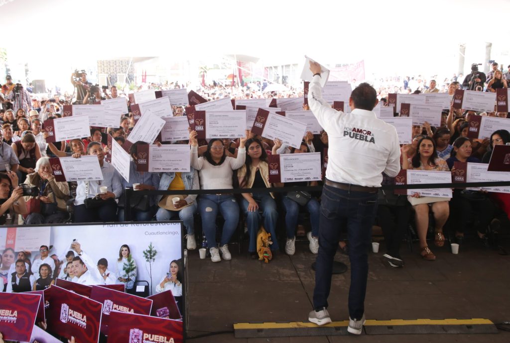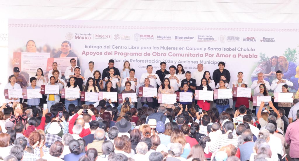 CUAUTLANCINGO, Pue.– Con la participación de más de 4 mil personas y bajo la visión humanista del gobernador Alejandro Armenta, el gobierno de Puebla, en sintonía con las directrices de la presidenta Claudia Sheinbaum, continúa la consolidación de un modelo de desarrollo basado en la confianza ciudadana, la participación comunitaria y la justicia social. Durante un evento multitudinario, se entregaron importantes apoyos del programa “Obra Comunitaria Por Amor a Puebla”, así como acciones municipales en beneficio de San Andrés Cholula, San Pedro Cholula y Cuautlancingo.