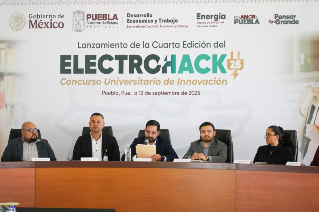 CIUDAD DE PUEBLA, Pue.- Con el respaldo del Gobierno del Estado de Puebla, que encabeza Alejandro Armenta, la Agencia de Energía llevó a cabo el evento de lanzamiento del Concurso Universitario de Innovación: ElectroHack 2025, que en su cuarta edición busca consolidar la participación de las juventudes en los retos que se enfrentan en materia energética.