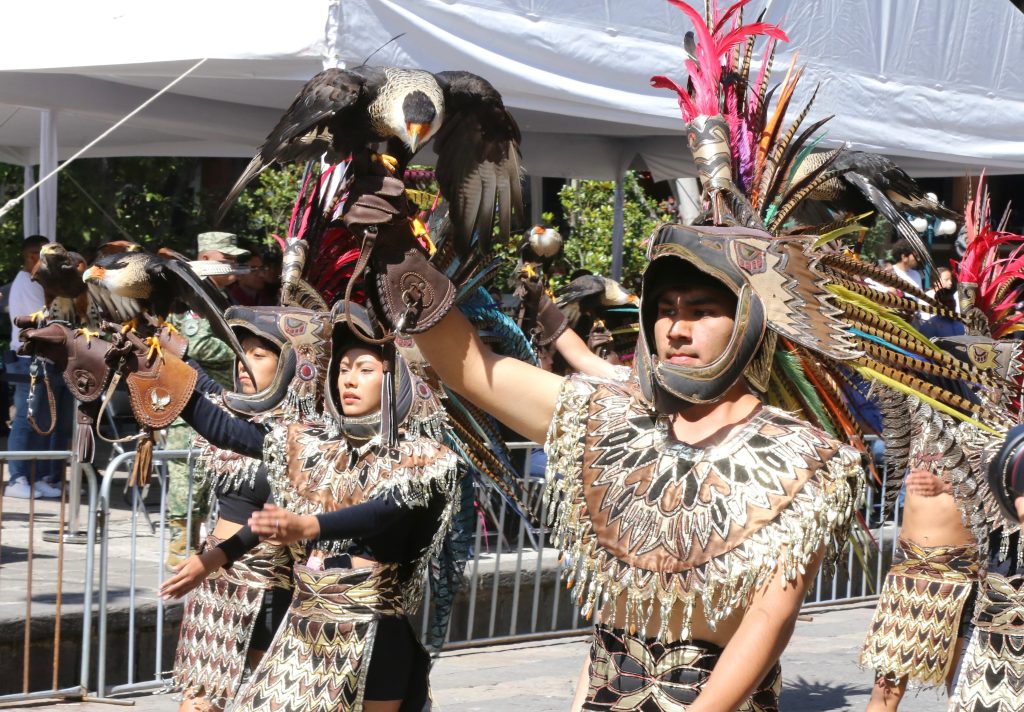 En la parada cívica participaron una bandera monumental, nueve banderas de gaza y nueve de guerra; mil 68 integrantes de las Fuerzas Armadas y de la Guardia Nacional, con 87 vehículos; 10 binomios caninos; 429 elementos de la Secretaría de Seguridad Pública con 54 unidades y cinco equipos; así como 4 mil estudiantes y personal docente.