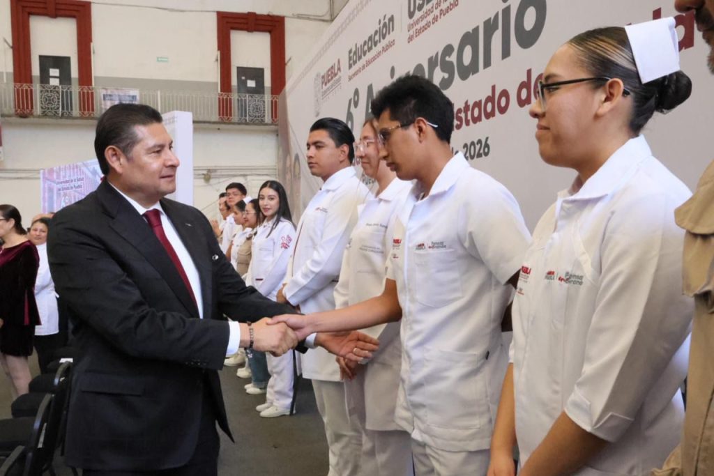 Durante la conmemoración del sexto aniversario de la USEP, el gobernador Alejandro Armenta Mier, afirmó que la institución se afianza como un pilar en la formación de profesionales de la salud. Destacó que a su llegada al gobierno impulsó la ampliación de la universidad y fortaleció la transformación que vive Puebla mediante sus sedes en Yaonáhuac, Zoquitlán, Tepexi de Rodríguez e Izúcar de Matamoros. «Cada vez que un estudiante termina su carrera, egresa un ángel que protege la vida de las y los poblanos, porque de ustedes depende la esperanza de vida de muchas personas», dijo.