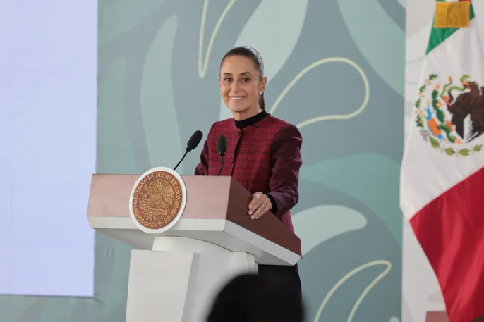 Tijuana, Baja California, México, 30 de enero de 2026. La doctora Claudia Sheinbaum Pardo, presidenta Constitucional de los Estados Unidos Mexicanos en conferencia de prensa matutina, “Conferencia del Pueblo” desde Tijuana, Baja California. La acompañan Marina del Pilar Ávila Olmeda, gobernadora Constitucional del Estado de Baja California; Omar García Harfuch, secretario de Seguridad y Protección Ciudadana (SSPC); Ricardo Trevilla Trejo, secretario de la Defensa Nacional (Sedena); Hernán Cortés Hernández, comandante de la Guardia Nacional (GN); Raymundo Pedro Morales Ángeles, secretario de Marina (Semar); Marcela Figueroa Franco, secretaria ejecutiva del Sistema Nacional de Seguridad Pública (SESNSP); Ariadna Montiel Reyes, secretaria del Bienestar; María Elena Andrade, Fiscal General del Estado de Baja California; Jesús Antonio Esteva Medina, secretario de Infraestructura, Comunicaciones y Transportes; Laureano Carrillo Rodriguez, secretario de Seguridad Ciudadana de Baja California; Efraín Morales López, director general de la Comisión Nacional del Agua (Conagua) y Bulmaro Juárez Pérez, divulgador de lenguas originarias, presentador de la sección “Suave Patria”. Foto: Gabriel Monroy / Presidencia