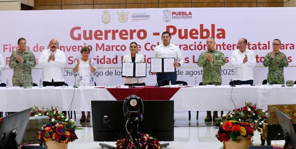 CHILPANCINGO, Gro.- Con la firma del Convenio Marco de Colaboración Interestatal para fortalecer la Seguridad Pública en los Límites Territoriales, los gobiernos de Puebla y Guerrero dan un paso decisivo hacia la construcción de paz y confianza ciudadana. Este acuerdo consolida la estrategia del gobernador Alejandro Armenta, quien a sólo 259 días de haber iniciado su gestión, ha logrado blindar a la entidad mediante convenios de seguridad con la mayoría de los estados vecinos.