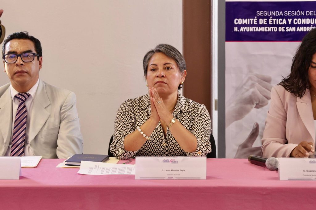 San Andrés Cholula, Puebla. – Con el objetivo de dar continuidad a la política de integridad para el fortalecimiento de un servicio público ético e íntegro, la presidenta municipal Lupita Cuautle Torres encabezó la segunda sesión del Comité de Ética y Conducta del Ayuntamiento de San Andrés Cholula.