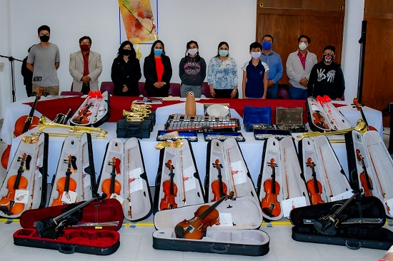 En dicho acto simbólico fueron entregados los siguientes instrumentos musicales nuevos para niños: 3 contrabajos, 7 violonchelos, 10 violines, 4 violas, 3 flautas transversal, 1 flauta picolo, 2 trombones, 3 trompetas pocken, 2 clarinetes, 1 glocken, 1 xilófono, 1 plato suspendido, 1 pandero y 1 güiro.