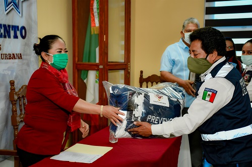Bajo los lineamientos de Sana Distancia, como acción implementada ante la contingencia derivada del COVID-19, se hizo la entrega de paquetes, los cuales constan de herramientas necesarias para poder desempeñar su labor, 34 elementos, quienes se encuentran adscritos a las áreas de Protección Civil Municipal, Guardia Urbana, Bomberos, Paramédicos, Técnico Vial, Prevención del Delito y Atención a Víctimas.