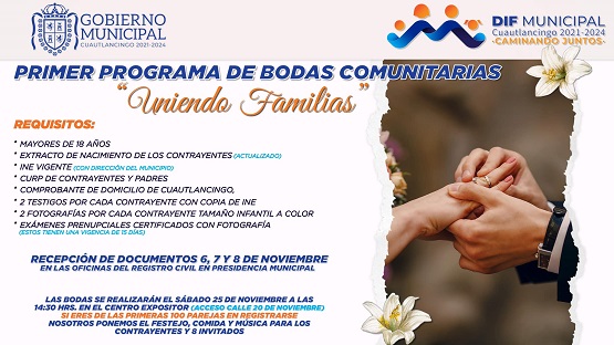 Recuerda, si eres de san Lorenzo Almecatla, Sanctorum, Chautenco o de alguna colonia o barrio de #Cuautlancingo y estás planeando tu boda, tú puedes ser parte de nuestro programa “Uniendo Familias”.