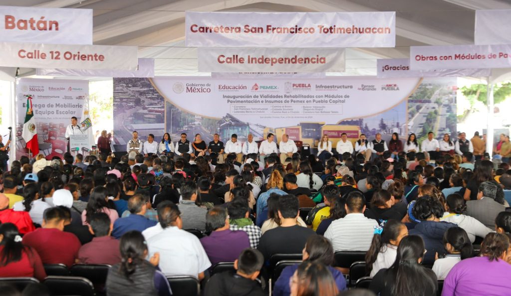 Por combate eficaz al huachicol, PEMEX aumenta donación de materiales para pavimentación en Puebla