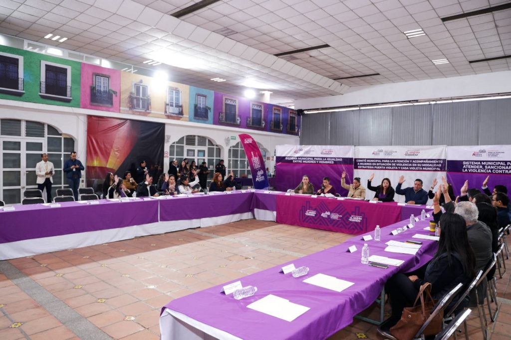 San Andrés Cholula, Puebla.— Con el propósito de fortalecer la coordinación institucional y consolidar políticas públicas con perspectiva de género, la presidenta municipal Lupita Cuautle encabezó las sesiones ordinarias de los Sistemas para la Igualdad entre Mujeres y Hombres; para Prevenir, Atender, Sancionar y Erradicar la Violencia contra las Mujeres; así como del Comité Municipal de la Estrategia Puerta Violeta y Casa Violeta.