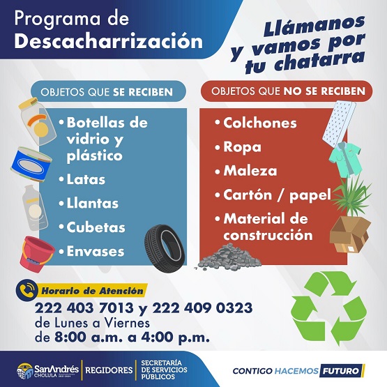La Secretaría de Servicios Públicos San Andrés Cholula pone a tu disposición su programa de
