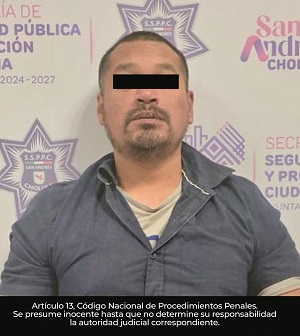 San Andrés Cholula, Puebla.- En una intervención coordinada con el Ejército Mexicano, la Guardia Nacional y la Policía Estatal Preventiva, la Secretaría de Seguridad Pública y Protección Ciudadana (SSPC) de San Andrés Cholula detuvo en el Barrio de Santiago Xicotenco a Neptaly “N.”, de 38 años de edad, como probable responsable de violencia familiar y lesiones dolosas.