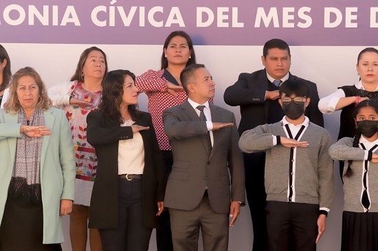 San Andrés Cholula, Puebla. El Ayuntamiento de San Andrés Cholula llevó a cabo la Ceremonia Cívica correspondiente al mes de diciembre, a la cual asistieron estudiantes de la Secundaria 24 de Febrero de la colonia Concepción Guadalupe y del Bachillerato José Vasconcelos de la colonia Emiliano Zapata, quienes participaron en el programa “Un Día con el Presidente”.