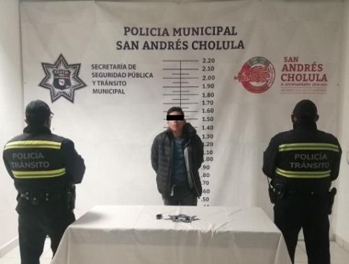 Elementos de la Secretaría de Seguridad Pública y Tránsito Municipal (SSPTM) de San Andrés Cholula, aseguraron en Calzada Zavaleta y Camino Real a Cholula a Jesús “N”, de 33 años, por su presunta participación en el robo de una camioneta con violencia de una camioneta.