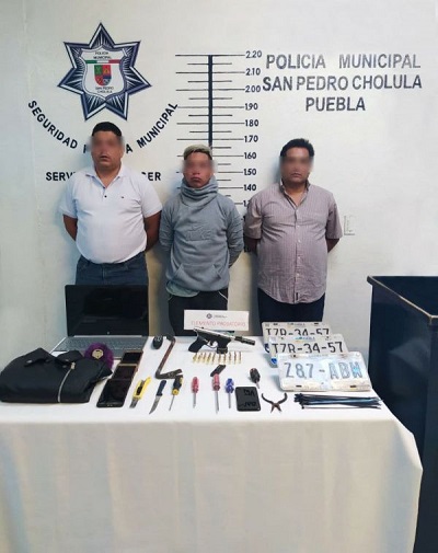 Por portación de arma sin el permiso correspondiente, detiene policía de San Pedro Cholula a 3 hombres