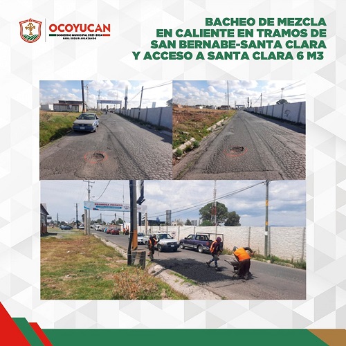Con el propósito de mejorar las principales vialidades del municipio, la administración se encuentra realizando el bacheo y mantenimiento para mejorar la Infraestructura de Ocoyucan.
