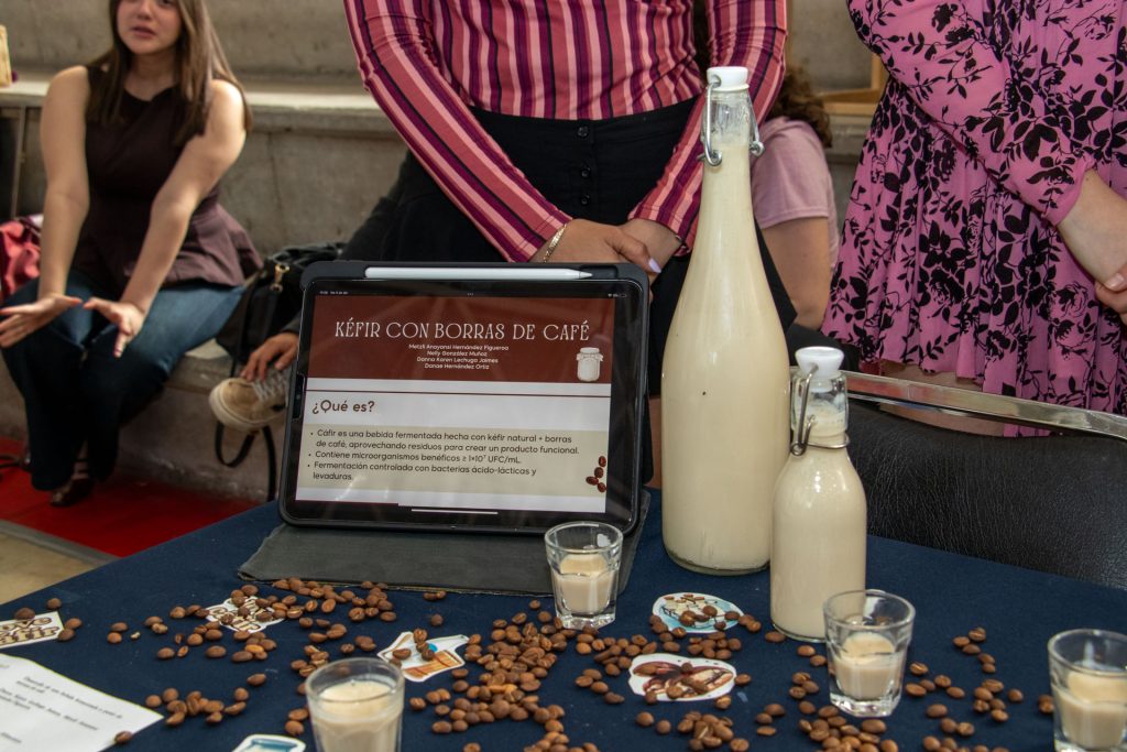 Lo que comúnmente termina en la basura fue el punto de partida para una propuesta innovadora. Nelly González Muñoz, Metzli Hernández Figueroa, Danna Lechuga Jaimes y Danae Hernández Ortiz, estudiantes de octavo semestre de la Licenciatura en Nutrición y Ciencias de los Alimentos de la IBERO Puebla, desarrollaron Cáfir, una bebida fermentada elaborada con kéfir natural e infusionada con borras de café recolectadas en las cafeterías universitarias.