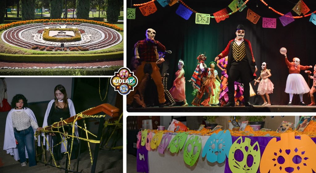 Cholula, Puebla; a 31 de octubre de 2025.- Con el objetivo de honrar la memoria, la identidad y el arte, la Universidad de las Américas Puebla (UDLAP) celebró el Día de Muertos con una serie de actividades artísticas y culturales que abarcaron espectáculos escénicos, concursos literarios, colocación de ofrendas y la decoración del campus universitario con flores de cempasúchil; actividades que pusieron de manifiesto la formación integral y creatividad de su comunidad universitaria, así como la riqueza de las tradiciones mexicanas.